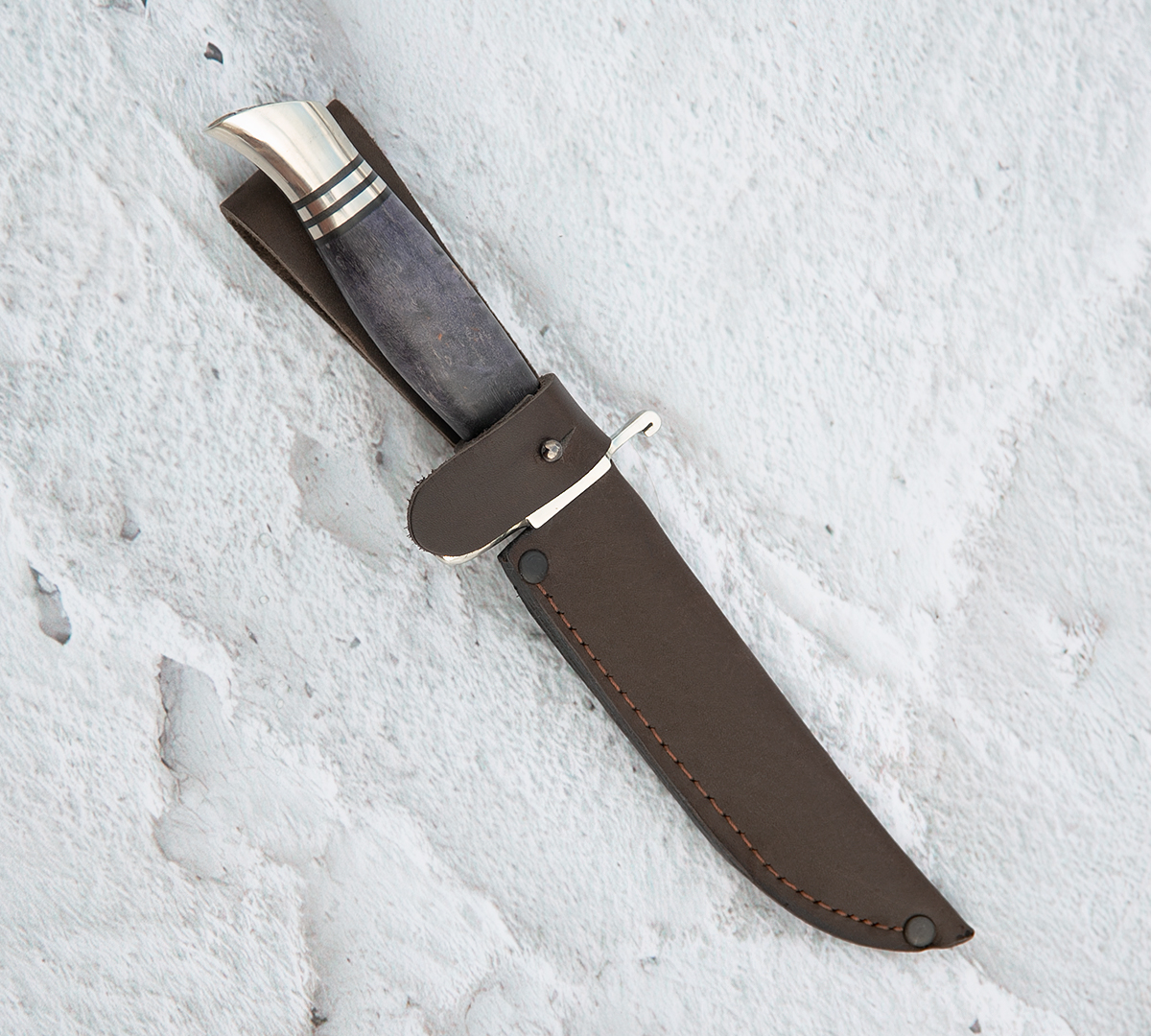 Финка НКВД из булатной стали, рукоять - стабилизированная карельская береза, кожаный чехол идет в комплекте.