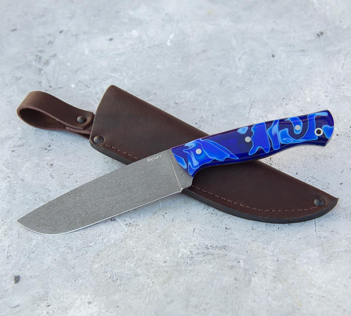 Нож цельнометаллический Беркут - 2 из булатной стали, рукоять - акрил, кожаный чехол идет в комплекте.