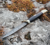 Финка НКВД из дамасской стали, рукоять - черный граб, кожаный чехол идет в комплекте.
