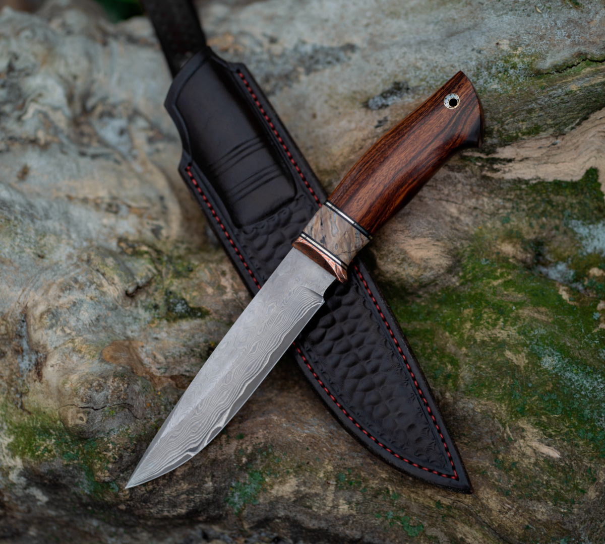 Нож Сибиряк из порошковой стали S390 в нержавеющих обкладках, рукоять - айронвуд, зуб мамонта, формованный чехол идет в комплекте.