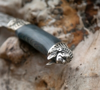 Нож Сибиряк из порошковой нержавеющей стали М-398 с травлением, рукоять - стабилизированный дальневосточный ясень, кожаный чехол в комплекте.