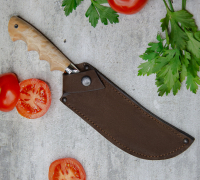 Нож Узбек - Пчак из нержавеющей стали N690, рукоять - стабилизированная карельская береза, кожаный чехол идет в комплекте.