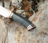 Нож Кабан из порошковой стали S390, рукоять - стабилизированный дальневосточный ясень, кожаный чехол в комплекте.